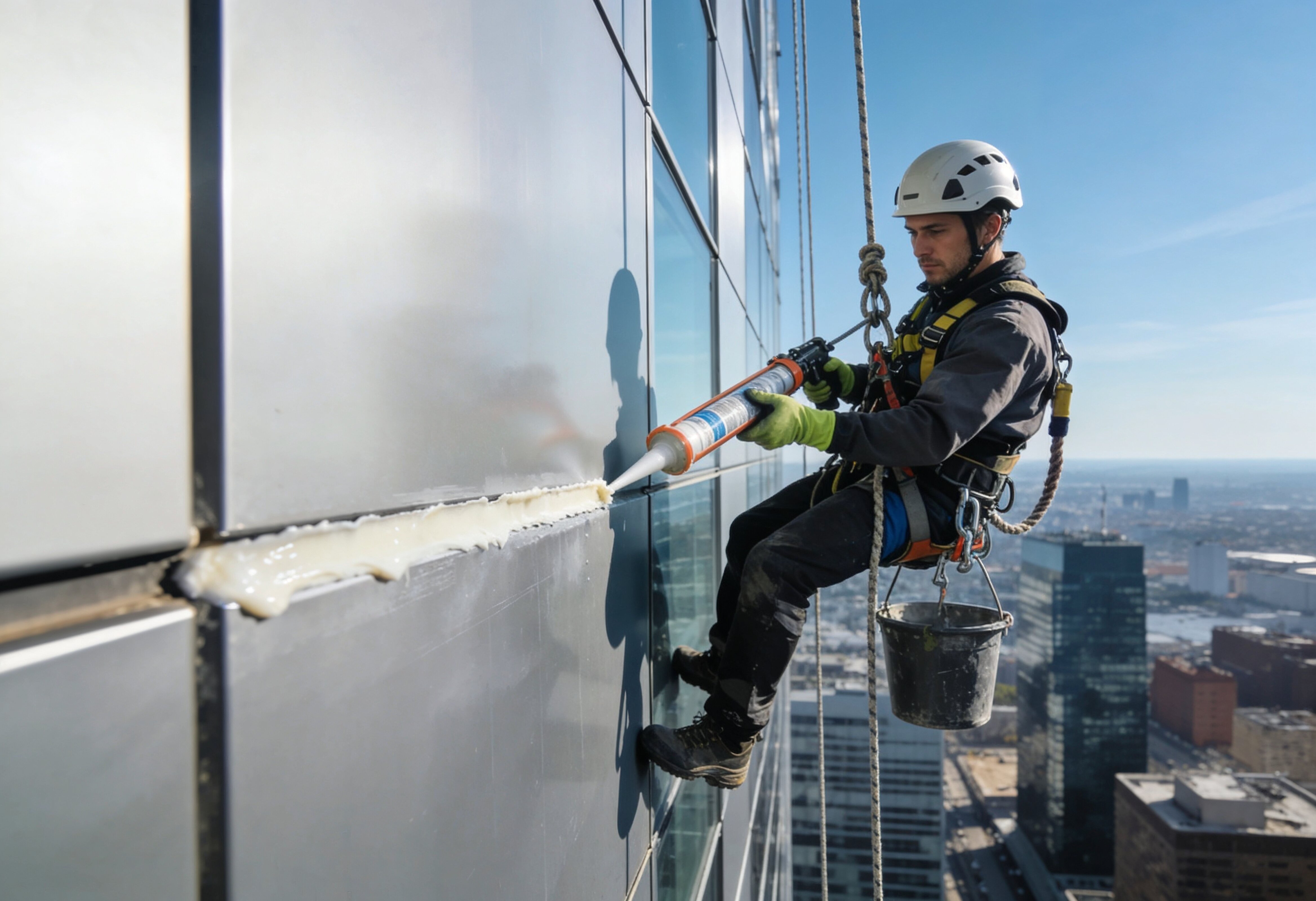 Wir kommen mit Seil und Sicherung an jede Stelle der Fassade, vom Erdgeschoss bis zum Hochhaus. Schneller als ein Gerüst, günstiger als Hubsteiger, ohne Genehmigung der Stadt.